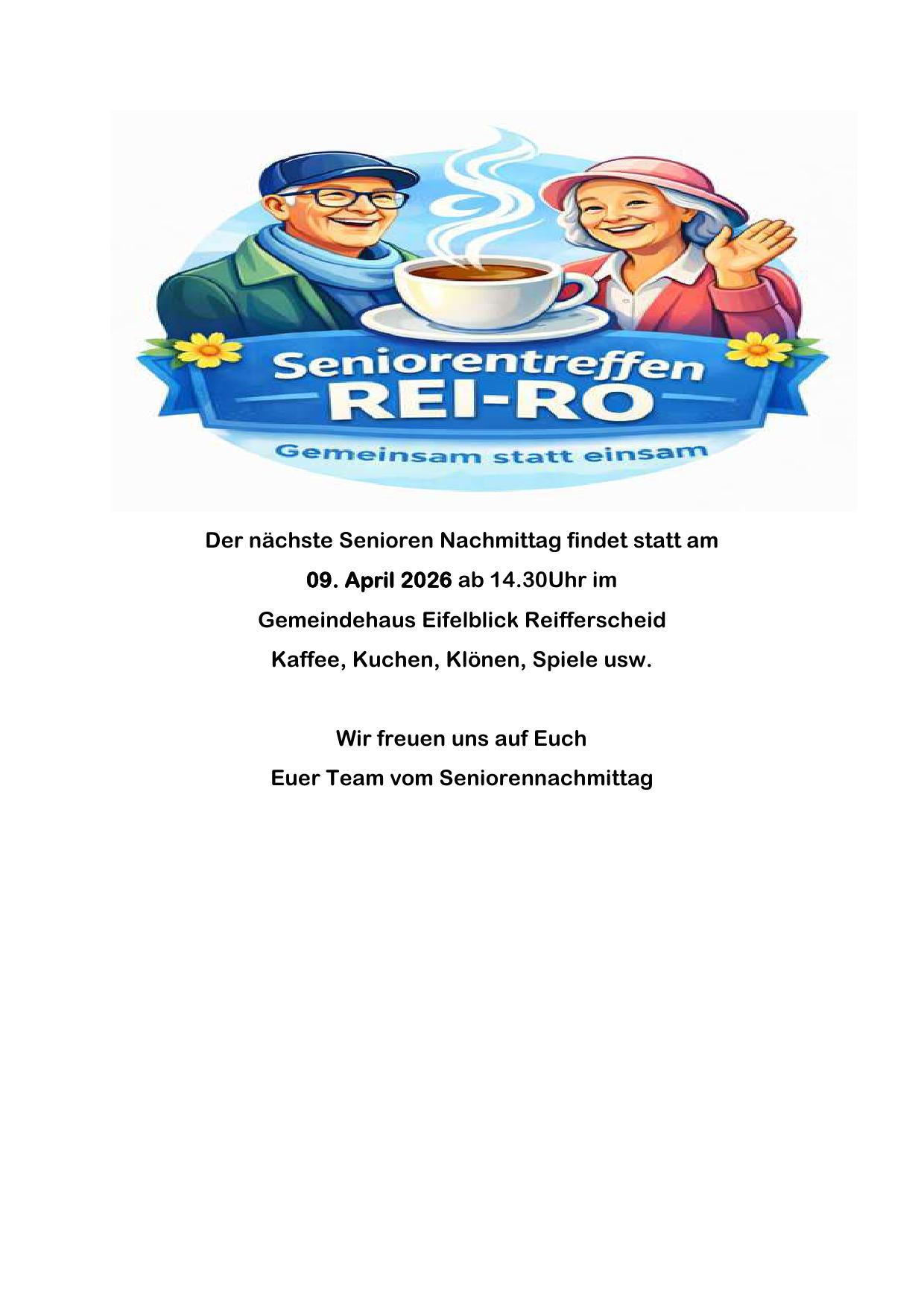 Moonlight Studio09.03.2026Gemeinde Osterverkauf 2026 in Reifferscheid09.03.2026Osterverkauf am 15.03.2026 von 10.00 bis 14.30 Uhr.Mehr lesen
