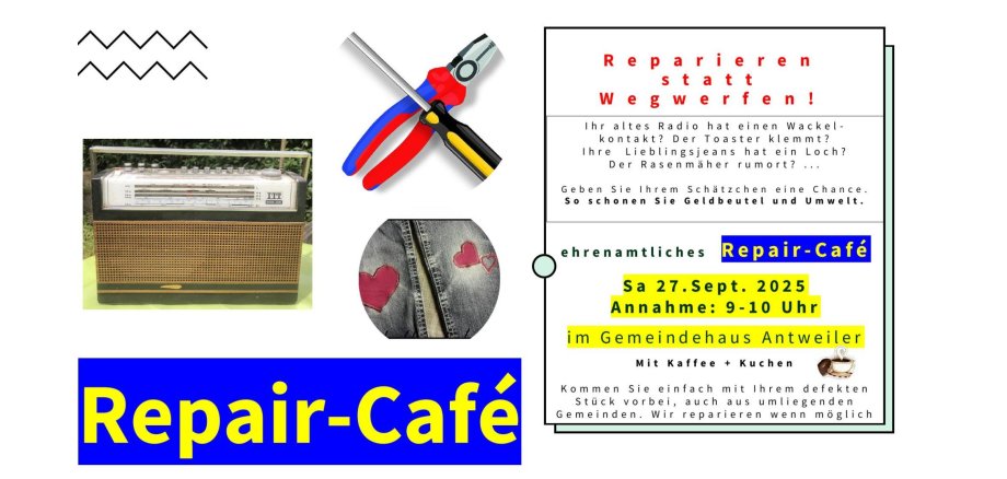 Repair-Cafè wieder zur Annahme von reparaturbedürftigen Geräten geöffnet. Schonen Sie Ihren Geldbeutel und die Umwelt. Reparieren statt wegwerfen.