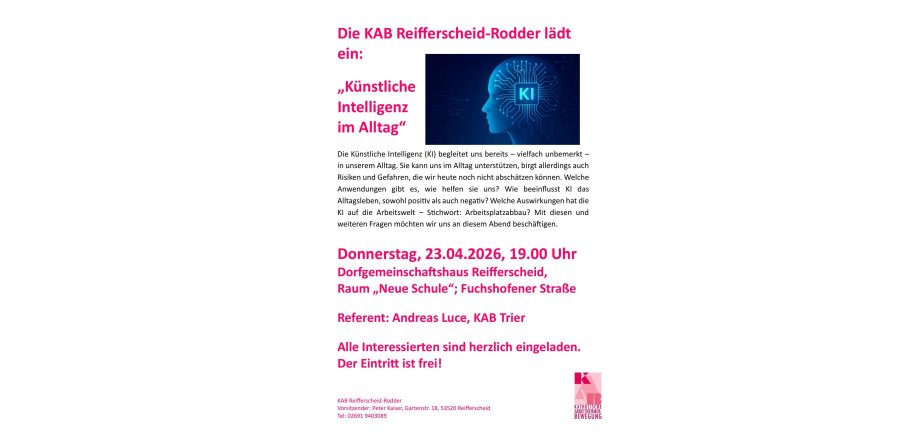 Die KAB Reifferscheid-Rodder lädt ein zur Veranstaltung "Künstliche Intelligenz im Alltag".